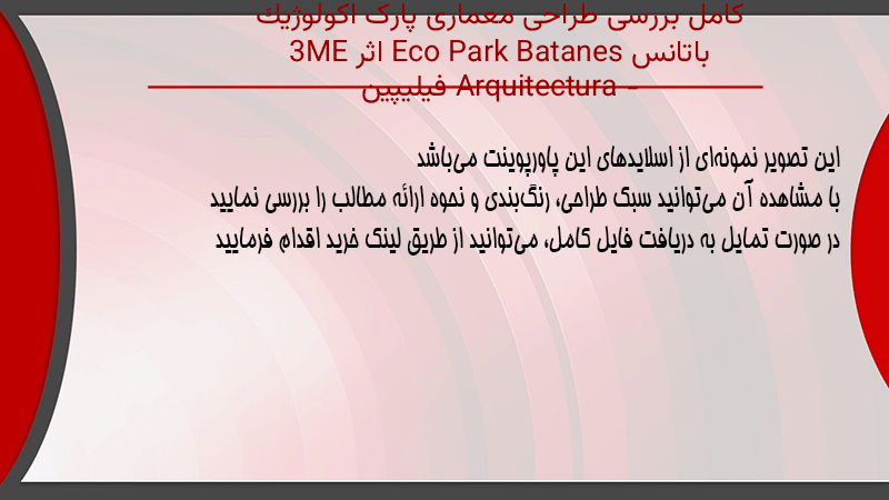 پاورپوینت کامل بررسی طراحی معماری پارک اکولوژیک باتانس Eco Park Batanes اثر ۳ME Arquitectura – فیلیپین