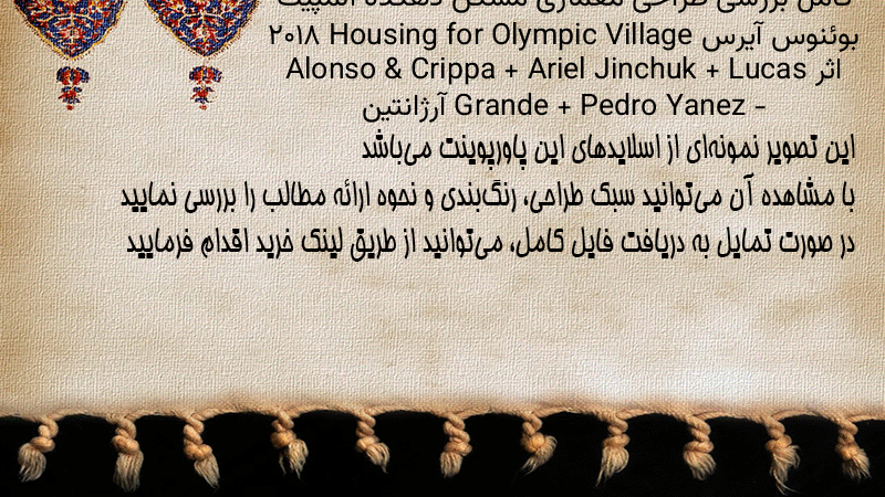 پاورپوینت کامل بررسی طراحی معماری مسکن دهکده المپیک بوئنوس آیرس ۲۰۱۸ Housing for Olympic Village اثر Alonso & Crippa + Ariel Jinchuk + Lucas Grande + Pedro Yanez – آرژانتین