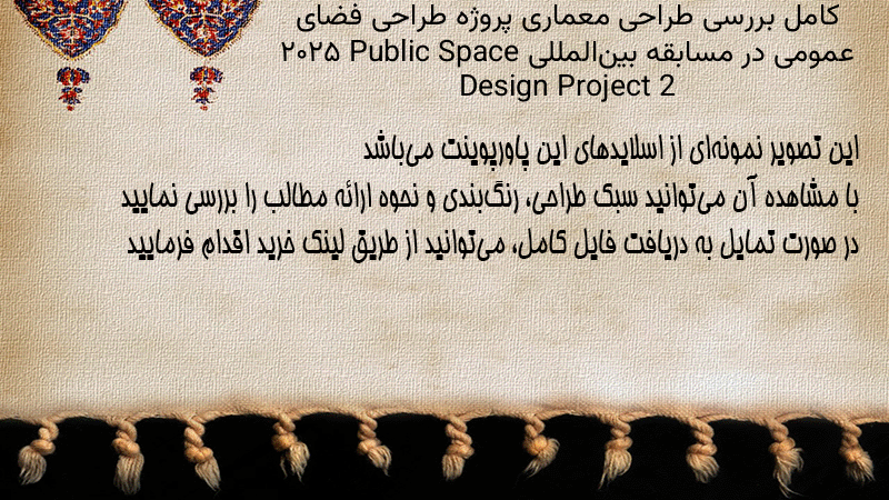 پاورپوینت کامل بررسی طراحی معماری پروژه طراحی فضای عمومی در مسابقه بینالمللی ۲۰۲۵ Public Space Design Project 2