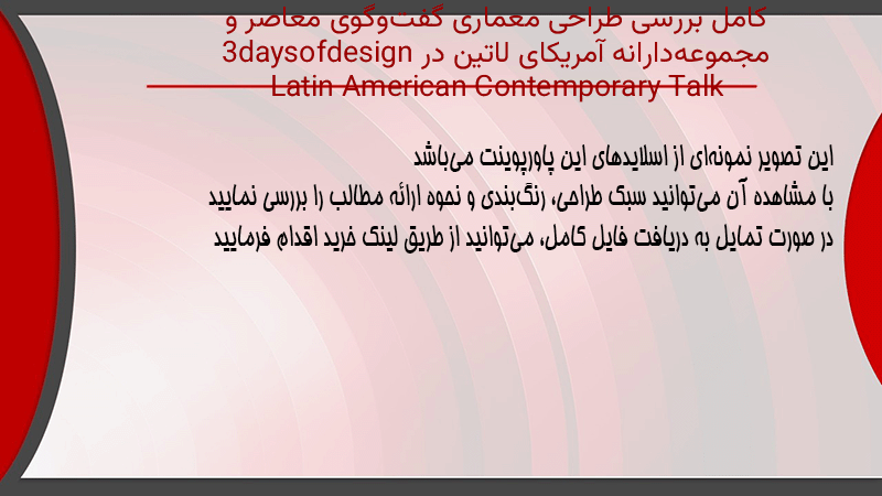 پاورپوینت کامل بررسی طراحی معماری گفتوگوی معاصر و مجموعهدارانه آمریکای لاتین در ۳daysofdesign Latin American Contemporary Talk