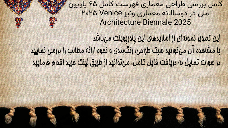 پاورپوینت کامل بررسی طراحی معماری فهرست کامل ۶۵ پاویون ملی در دوسالانه معماری ونیز ۲۰۲۵ Venice Architecture Biennale 2025