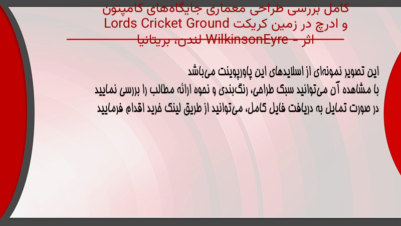 پاورپوینت کامل بررسی طراحی معماری جایگاههای کامپتون و ادرچ در زمین کریکت Lords Cricket Ground اثر WilkinsonEyre – لندن، بریتانیا