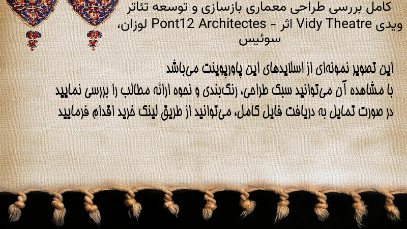 پاورپوینت کامل بررسی طراحی معماری بازسازی و توسعه تئاتر ویدی Vidy Theatre اثر Pont12 Architectes – لوزان، سوئیس