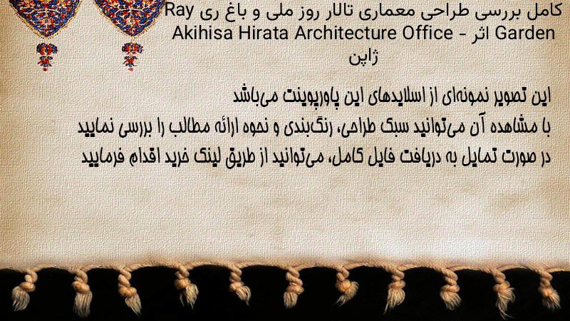 پاورپوینت کامل بررسی طراحی معماری تالار روز ملی و باغ ری Ray Garden اثر Akihisa Hirata Architecture Office – ژاپن