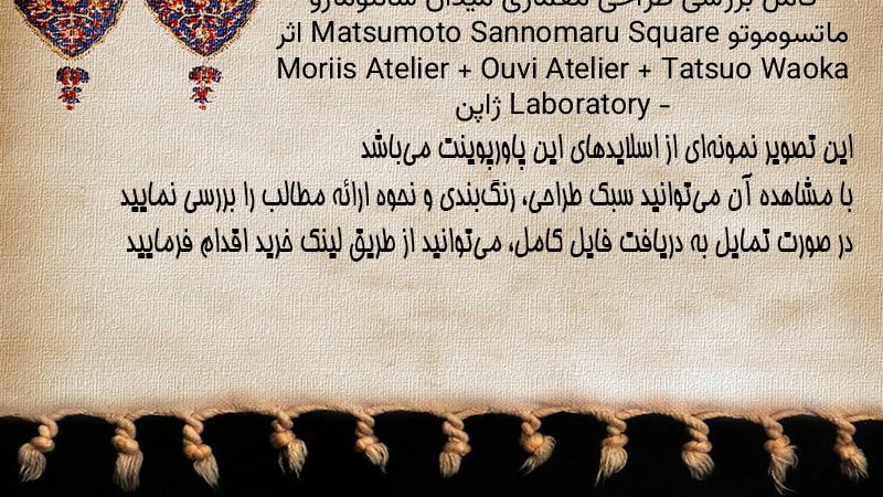 پاورپوینت کامل بررسی طراحی معماری میدان ساننومارو ماتسوموتو Matsumoto Sannomaru Square اثر Moriis Atelier + Ouvi Atelier + Tatsuo Waoka Laboratory – ژاپن