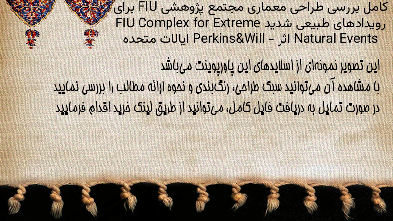 پاورپوینت کامل بررسی طراحی معماری مجتمع پژوهشی FIU برای رویدادهای طبیعی شدید FIU Complex for Extreme Natural Events اثر Perkins&Will – ایالات متحده