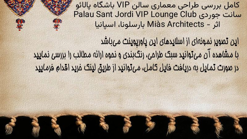 پاورپوینت کامل بررسی طراحی معماری سالن VIP باشگاه پالائو سانت جوردی Palau Sant Jordi VIP Lounge Club اثر Miàs Architects – بارسلونا، اسپانیا