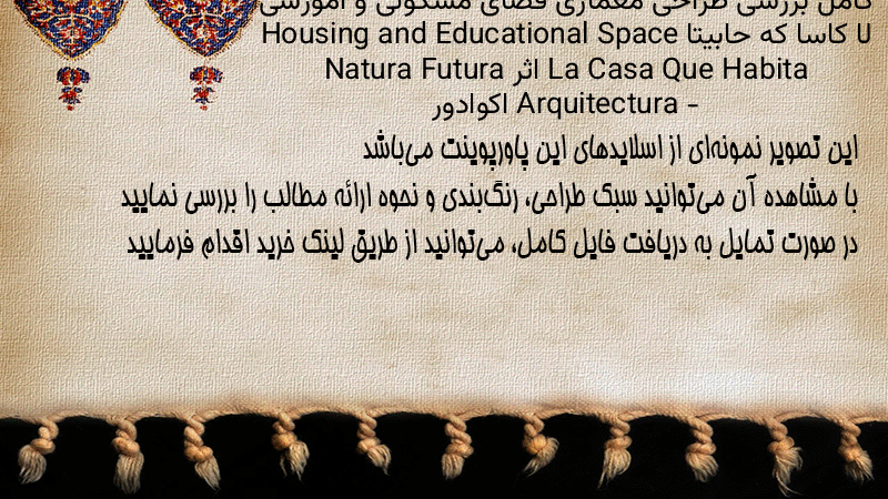 پاورپوینت کامل بررسی طراحی معماری فضای مسکونی و آموزشی لا کاسا که حابیتا Housing and Educational Space La Casa Que Habita اثر Natura Futura Arquitectura – اکوادور