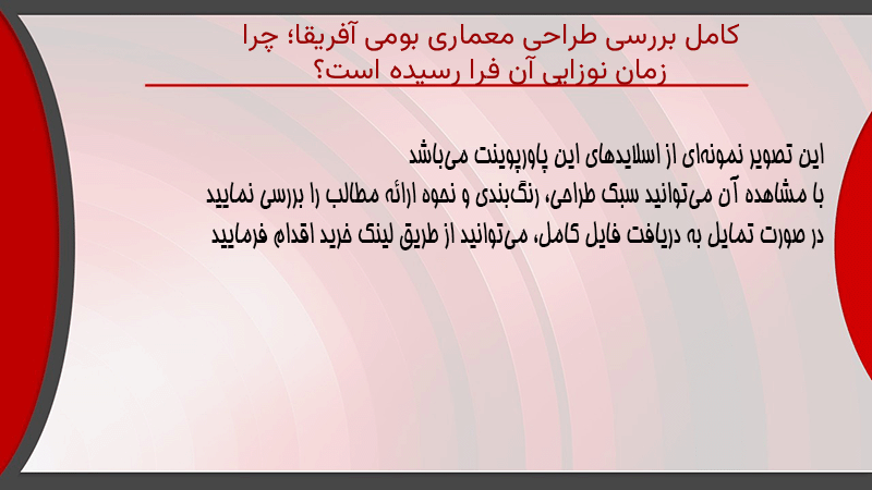 پاورپوینت کامل بررسی طراحی معماری بومی آفریقا؛ چرا زمان نوزایی آن فرا رسیده است؟