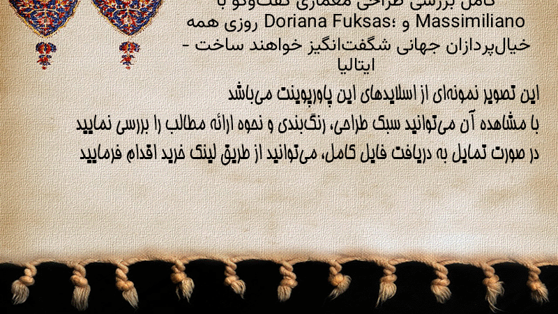 پاورپوینت کامل بررسی طراحی معماری گفتوگو با Massimiliano و Doriana Fuksas؛ روزی همه خیالپردازان جهانی شگفتانگیز خواهند ساخت – ایتالیا