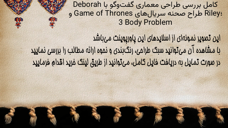 پاورپوینت کامل بررسی طراحی معماری گفتوگو با Deborah Riley؛ طراح صحنه سریالهای Game of Thrones و ۳ Body Problem