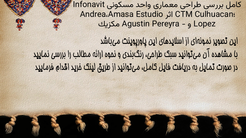 پاورپوینت کامل بررسی طراحی معماری واحد مسکونی Infonavit CTM Culhuacan؛ اثر Amasa Estudio، Andrea Lopez و Agustin Pereyra – مکزیک