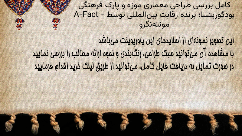 پاورپوینت کامل بررسی طراحی معماری موزه و پارک فرهنگی پودگوریتسا؛ برنده رقابت بینالمللی توسط A-Fact – مونتهنگرو