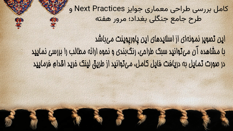 پاورپوینت کامل بررسی طراحی معماری جوایز Next Practices و طرح جامع جنگلی بغداد؛ مرور هفته