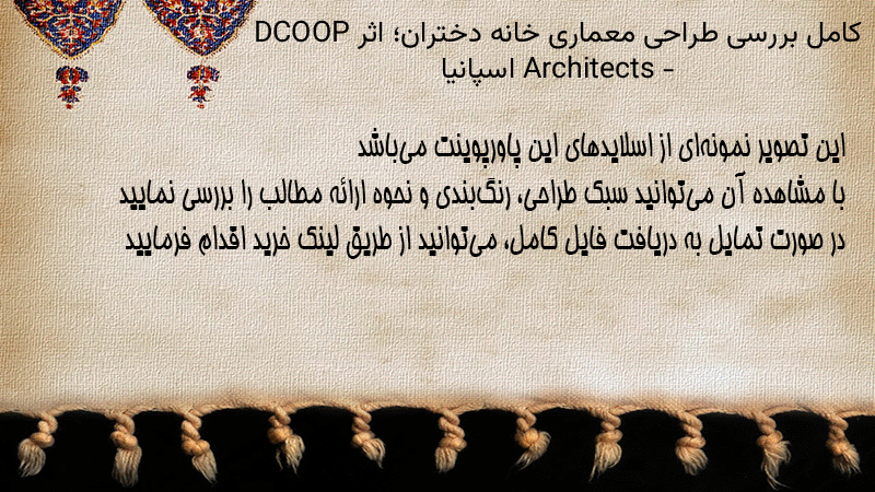 پاورپوینت کامل بررسی طراحی معماری خانه دختران؛ اثر DCOOP Architects – اسپانیا